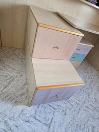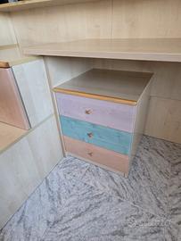 Vendo per passaggio a nuova cameretta questa scrivania, comodino con 3 cassetti e scala con 2 cassettoni. 200 euro trattabili, vendo a chi se lo viene a prendere. Zona Martina Franca.