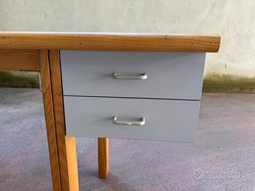 Scrivania compatta in legno chiaro e laminato grigio con cassetti