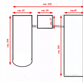 Vendo causa rifacimento studio Bellissima scrivania composta da bancone posteriore con cassettiere, tavolino con rotelle, porta pc e porta tastiera, piano scrivania. Ottime condizioni. Misure riportate in piantina. Smontaggio e trasporto a carico dell'acquirente. Sedie non comprese. Prezzo trattabile. Bergamo città