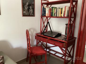 Cedesi libreria con 2 cassetti, libreria con 2 ripiani e sedia. Il tutto prodotto artigianale in legno Rattan colore ciliegio.