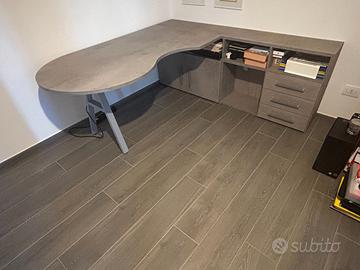 Causa cambio arredamento, cedo bellissima scrivania per studio da computer, praticamente nuova con tanto spazio anche sotto con ripiani e cassetti. Numero due scaffali molto capienti da appendere. Posso fornire copia della fattura con le misure di tutti pezzi.