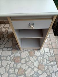vendo scrivania da cameretta utilizzabile anche come mobile per macchina da cucire,in legno laccata beige,2 ripiani e 1 cassetto.Vissuta come da foto. Le misure sono:B.cm 88- H cm.73-P.cm.48 , rispondo via mail, ritiro sul posto.