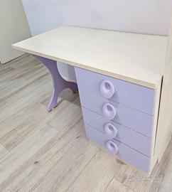 Scrivania con 4 cassetti colore panna e lilla larghezza cm 120 altezza cm 74.5 profondità cm 58.5 larghezza cassetto cm 50 SE INTERESSATI SI PUO' ABBINARE IL LETTO + LETTO ESTRAIBILE (VEDI FOTO)