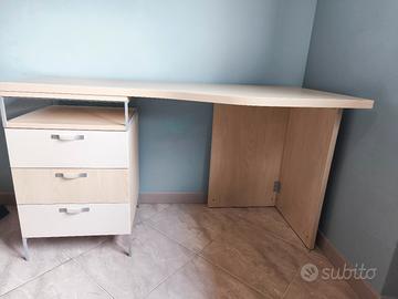 scrivania con cassetti e sedia rovere