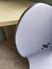 vendo scrivania ad onda con tre cassetti e sedia lilla, colore rovere. Ottime condizioni, ben tenuta. Misure: altezza 76 cm lunghezza 153 cm profondità lato cassetti 45 cm profondità lato destro 60 cm