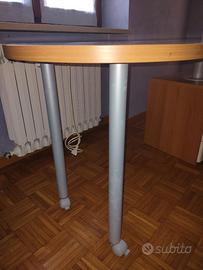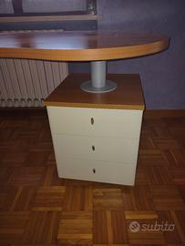 Scrivania con due gambe e cassettiera a tre cassetti come da fotografie. Dimensioni: cm. 160x80x78h - cassettiera cm. 45x48x54h. È in ottimo stato con solamente due piccoli segni di usura sul piano di lavoro. Non si effettua la spedizione, solo ritiro a mano.