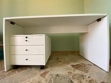 Laminato bianco e inox Dimensioni scrivania: 130x70xh72 Dimensioni cassettiera: 50x60h49