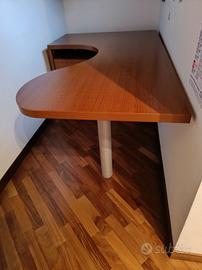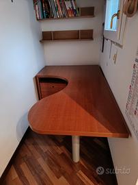 scrivania con cassettiera misure cm 180 X 105 parta più profonda e cm 80, parte meno profonda.