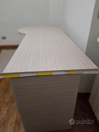 Vendo scrivania con piano di lavoro in legno chiaro (effetto rovere) e cassettiera azzurro chiaro.