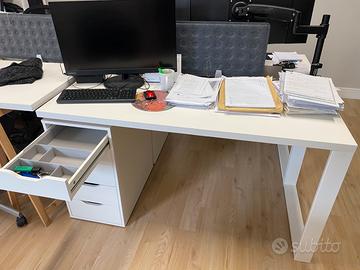 Scrivania perfetta per smartworking o uffici composta da un piano 140x60 con gamba in acciaio bianca e cassettiera Ikea Alex a 5 cassetti. Perfetto stato praticamente mai usata. Possibile smontarla facilmente per il trasporto