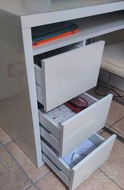 Scrivania dimensioni 110x60x75 con tre cassetti e ampio portadocumenti sotto il ripiano di lavoro. Il prezzo non è trattabile ma per chi è interessato regalo sedia e portamonitor (come da foto).