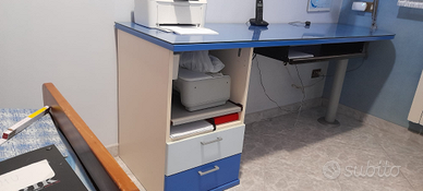 Vendo per inutilizzo, in ottime condizioni, scrivania completa di cassettiera e vetro sul piano per proteggerla dai graffi. Misure 200 x 60 x 78 h