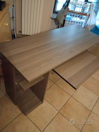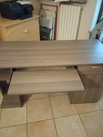 Vendo scrivania in finto legno colore marrone scuro, moderna e funzionale, tenuta in condizioni pari al nuovo.