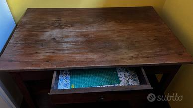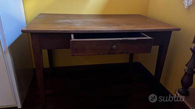 Vendo scrivania in legno dal gusto rustico e tradizionale, utilizzabile sia come scrivania sia come tavolo d’appoggio per cucina, soggiorno o taverna. Misure: 72x114x74cm Il mobile è caratterizzato da una struttura semplice e solida, con ampio piano in legno e cassetto frontale centrale, comodo per riporre piccoli oggetti, documenti o accessori. Leggere scalfiture date dagli anni, facilmente rimovibili. VENDITA SOLO CON RITIRO A MANO. NO SPEDIZIONE.