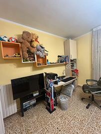 Scrivania composta da grande mensola e due scaffali /libreria di cui una con 4 cassetti e 3 cubi/mensola (v.foto ) Tutto In buone condizioni . Ritiro a domicilio,è tutto smontato .