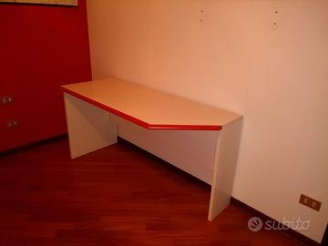 Scrivania in legno colore bianco opaco con profilo rosso, completa di libreria cm.20x200 in legno colore bianco. Vendo causa trasloco