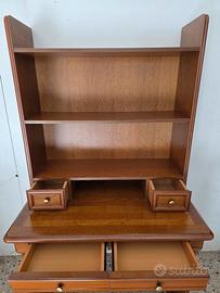 Scrivania con libreria in legno massello, colore noce( Nuova), con sedia inclusa misure scrivania: