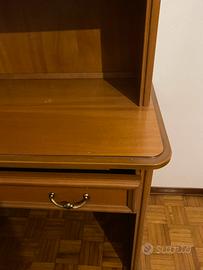 Scrivania con libreria sopra e grande cassetto, misure altezza scrivania 82 cm e libreria annessa sopra 102 cm, larghezza 110 cm e profondità 53 cm