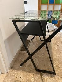 Vendo scrivania nera con piano in vetro molto resistente,ha una mensola sotto dove poter appoggiate ciò che si presferice ed è in ottime condizioni e molto pratica e comoda.