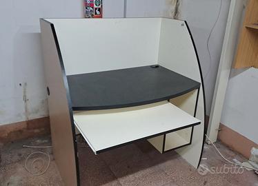 Scrivania con piano porta tastiera estraibile e spazio laterale per case del computer, ideale per ufficio o camera.