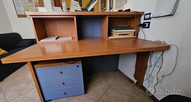 Scrivania con piccola cassettiera con rotelle