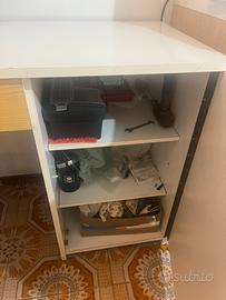 Scrivania con ripiani a destra e cassetti e sedia compresa. Ritiro a carico dell’acquirente
