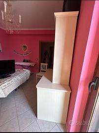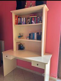 Scrivania con due cassettini sotto laterali e una libreria con ripiani: base e due mensole, molto capiente, profonda e tenuta come nuova.