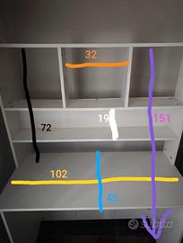 ottima scrivania con ripiani come nuova,unico "difetto" è visibile in foto