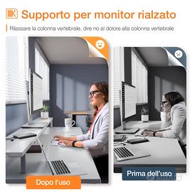 【Scrivania per computer con supporto per monitor】 La scrivania OK con un'altezza di 10 cm, il supporto per monitor solleva lo schermo per una migliore visibilità e riduce il dolore al collo e alla schiena, l'ampio spazio per il supporto per monitor consente di installare due monitor per computer.