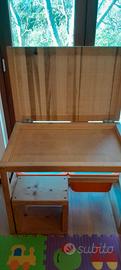 vendo scrivania in legno massello artigianale con piano ribaltabile e capiente vano porta oggetti completa di massiccio sgabello di seduta. sotto è possibile posizionare 2 scatole dell ikea (non comprese). le dimensioni sono larghezza cm 90 x cm 60 di profondità e cm 73 di altezza