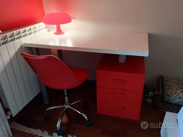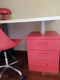 Scrivania con cassettiera e sedia girevole con ruote