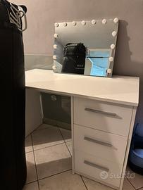 Scrivania con specchiera a led. Scrivania pochi segni di usura Trattabile