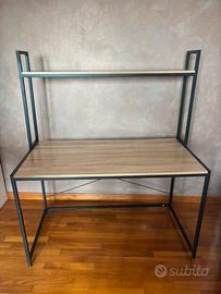 Scrivania Libreria Tavolo PC Computer Ufficio Studio Lavoro Scaffale Moderno 2 ripiani in Acciaio Legno 120x60x140cm