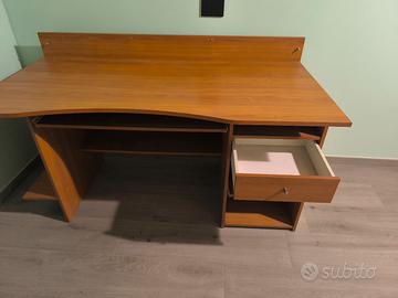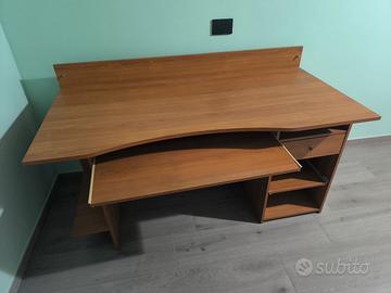 Vendo scrivania come da foto con vano porta Pc, piano estraibili per tastiera e stampante ed 1 cassetto.