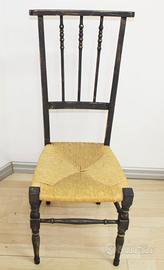 Elegante scrivania vintage anni ‘60 in legno (noce e faggio), completa di sedia originale con seduta in paglia. La scrivania è dotata di piano ribaltabile/pieghevole con vano interno e due pratici cassetti frontali. I pomelli sono stati sostituiti con elementi in gesso nero e oro che donano un tocco decorativo raffinato. Struttura slanciata con gambe sagomate e finitura effetto anticato. Ideale come: scrittoio tavolo da lavoro elemento d’arredo vintage 📌 Produzione: Italia (Sicilia) 📌 Periodo: circa 1950–1970 🔹 Condizioni: buone condizioni generali, con normali segni del tempo che ne valorizzano l’autenticità. Struttura solida. 📏 Dimensioni scrivania Larghezza: 117 cm Profondità: 49 cm Altezza: 86 cm 📏 Dimensioni sedia Altezza totale: 100 cm Altezza seduta: 43 cm 🚚 Note Possibilità di ritiro a mano o spedizione da concordare. Per ulteriori informazioni o foto non esitate a contattarmi.