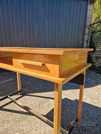 Consolle/scrivania in teak, Modernariato, design scandinavo, anni '60. Periodo del design 1950 - 1960. Mid-Century. Colore marrone chiaro, in buone condizioni con leggeri segni di utilizzo.