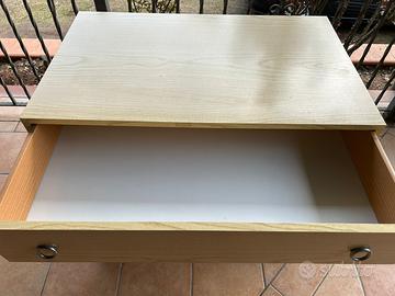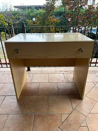 Scrivania semplice. Struttura in legno chiaro, dotata di un cassetto con pomelli ad anello. Ottime condizioni generali. Perfetta per uno studio, una cameretta o un angolo lavoro. Si adatta bene sia ad ambienti classici che contemporanei.