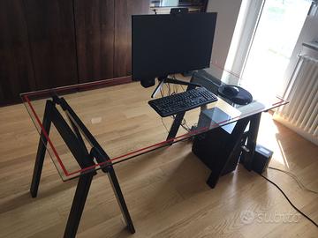 Vendesi scrivania ripiano in cristallo, cavalletto neri acciaio pieghevoli