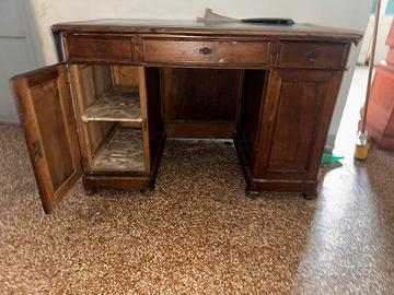 Vendo scrivania d’epoca in legno, solida e di grande fascino, ideale come scrivania, tavolo da studio o mobile vintage.