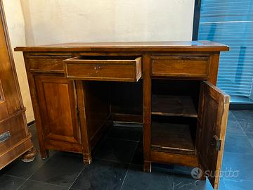 Scrivania con inserto in ecopelle, completamente restaurata. Dimensioni: 81x122x63 cm