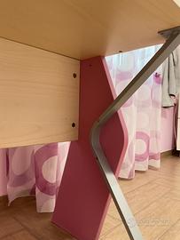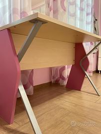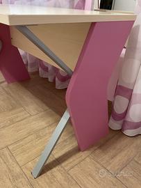 Vendo scrivania per cameretta in ottime condizioni, colore legno chiaro con inserti rosa. Design moderno, stabile e spaziosa, ideale per studio, computer o smart working. Usata con cura, pronta all’uso. Dimensioni: lunghezza 115 cm, altezza 74 cm, profondità 61 cm Possibilità di Ritiro a mano