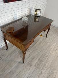 Scrivania da centro in massello di noce scuro, stile neoclassico, databile alla metà del ’900.