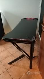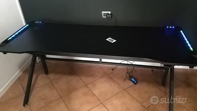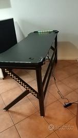 Vendo scrivania da gaming (come da foto) 160x60 cm. struttura in metallo verniciato a caldo nera e piano in mdf con rivestimento antigraffio con texture carbonio e dotata di illuminazione led rgb sui 2 lati gestibile da telecomando (vedi foto). Molto bella. La scrivania è stata smontata per facilitare il trasporto. NO SPEDIZIONE. Consegna solo a mano.