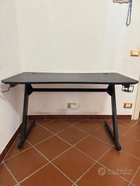 Scrivania da Gaming in Legno e Acciaio con passacavi, portabicchieri e gancio per cuffie, colore nero 120x65x74.5cm.