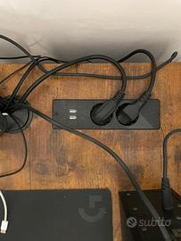 Scrivania acquistata poco piu di 3 mesi fa in ottime condizioni, solida e funzionale. Ampio piano in stile legno con struttura in metallo nero, ideale sia per postazione gaming che per studio o smart working. Dotata di: •Ripiano rialzato per monitor •Cassettiera laterale con più cassetti capienti •Spazio dedicato per PC fisso •Multipresa integrata con prese elettriche e USB •Struttura robusta e stabile Perfetta per configurazioni con doppi monitor, accessori gaming o lavoro d’ufficio. Venduta come da foto (accessori non compresi). La vendo solo perché devo sostituirla con una scrivania più lunga per aggiungere un altro computer, non per difetti. 📍 Ritiro a mano 💬 Per info o altre foto, contattami senza problemi