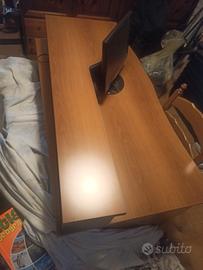 Scrivania ideale per lavorare,fare compiti e per lavorare con PC portatili oppure workstation o PC da gaming. Ha lo spazio per la tastiera dei PC fissi sotto scrivania che è a scomparsa,a può essere utilizzata come porta pc portatile e chiusa col computer sopra per cadute e utilizzare la scrivania. Ha un assetto laterale e vari scoparti sotto, quali porta stampante o porta pc fissi o porta libri. Ha gli scomparti per i porta CD o DVD. in definitiva è abbastanza versatile per vari utilizzi. Per qualsiasi informazione chiedete pure. Possibilità di consegna entro i 20km con piccola aggiunta.