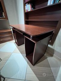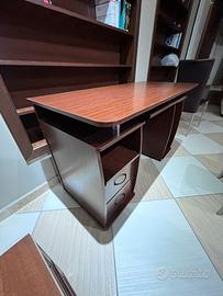 Regalo scrivania da PC in legno rosso bruno scuro, con mensola estraibile, 2 vani e 2 cassetti. Misure in cm: larghezza 120, profondità 55, altezza 74. Disponibile subito. Trasporto a carico dell’interessato.