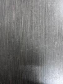 Scrivania da ufficio ad angolo, con un lato in legno scuro e un lato in vetro satinato 222 cm x 60 cm lato con vetro 200 cm x 80 cm lato legno scuro Altezza 73 cm La superficie in legno scuro presenta lievi segni di usura evidenziati nelle foto.