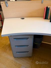 Vendesi scrivania da ufficio/bancone reception in ottime condizioni come da foto (solo qualche minimo segno di usura come da foto). Completo di colonna con cassetti.