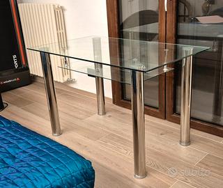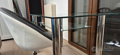 La sua superficie di vetro temperato trasparente è altamente resistente, la sua robusta struttura in acciaio è interamente verniciata a polvere. Le gambe della scrivania sono fatte di metallo cromato, creando così un senso di completezza e portando un tocco di eleganza nel vostro ufficio.